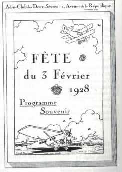 1930 : A l’occasion de la foire exposition de Mai, la chambre de commerce et l’aéroclub des Deux-Sèvres organisent, en plus d’une exposition nationale d’aviation, un « premier essai d’aviation commerciale NIORT-PARIS » (A.R. dans la journée) pendant 4 jours.