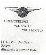 1935 : Création d’une section vol à voile qui débute avec un planeur AVIA construit par TOURON de POITIERS . Cet appareil est lancé par une voiture aménagée en treuil et le monitage était assuré par André ESSERTEAU.